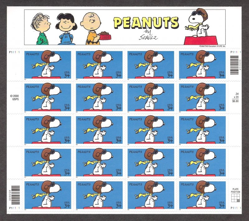 U.S. #3507 PEANUTS COMIC STRIP MINT SHEET NH