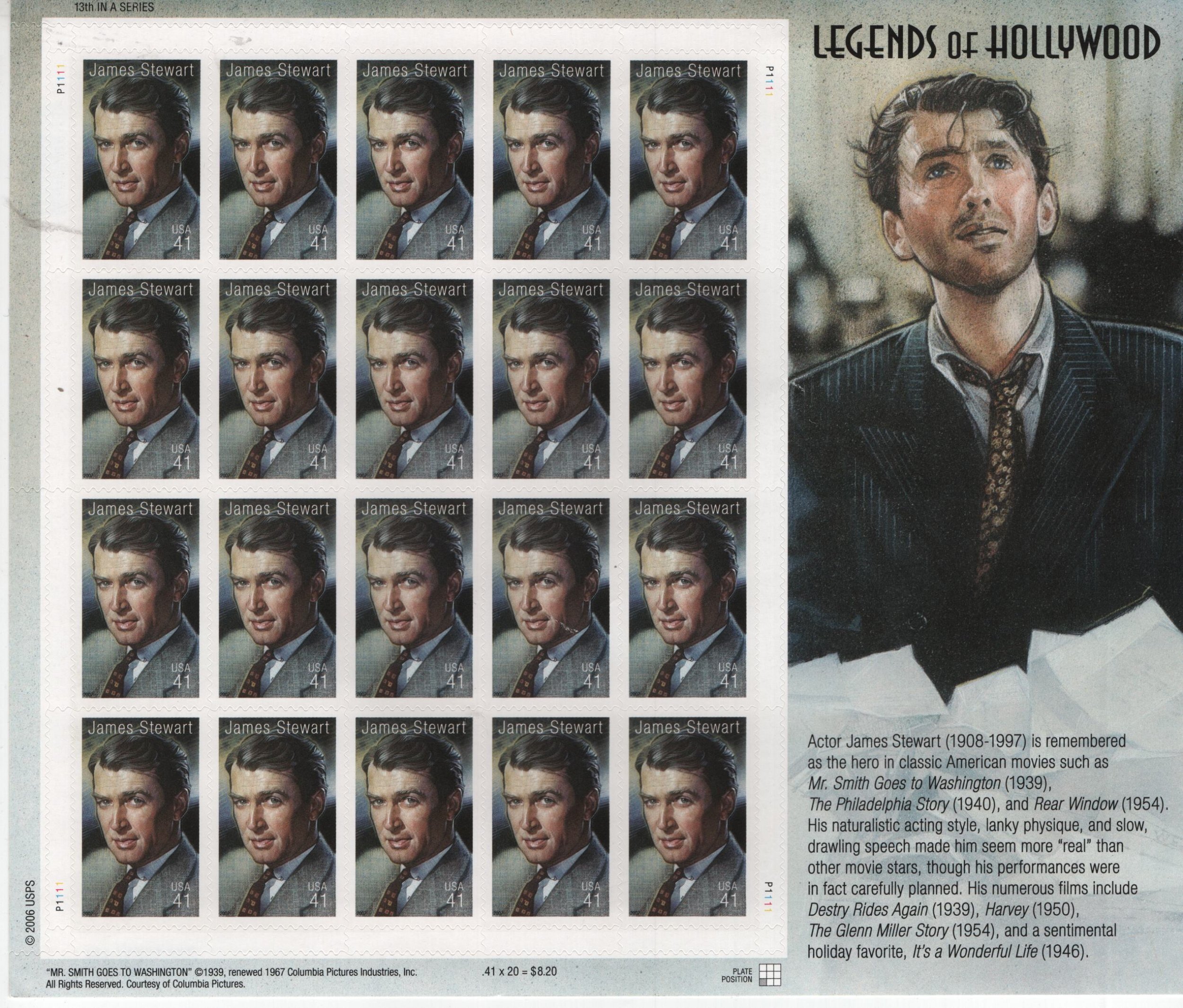 US, 4197, MNH, James Stewart, SHEET