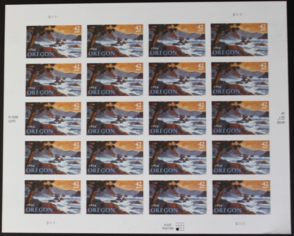 US #4376 Mint Sheet Oregon Statehood The image shown may not be the actual sheet you receive. Sheets will not be folded. Minor perf separations in the selvedge are normal and are not grounds for return. Centering ... Read More