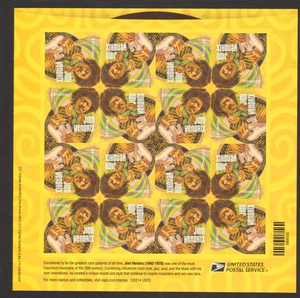 US #4880 Mint Sheet Jimi Hendrix The image shown may not be the actual sheet you receive. Sheets will not be folded. Minor perf separations in the selvedge are normal and are not grounds for return. Centering will ... Read More