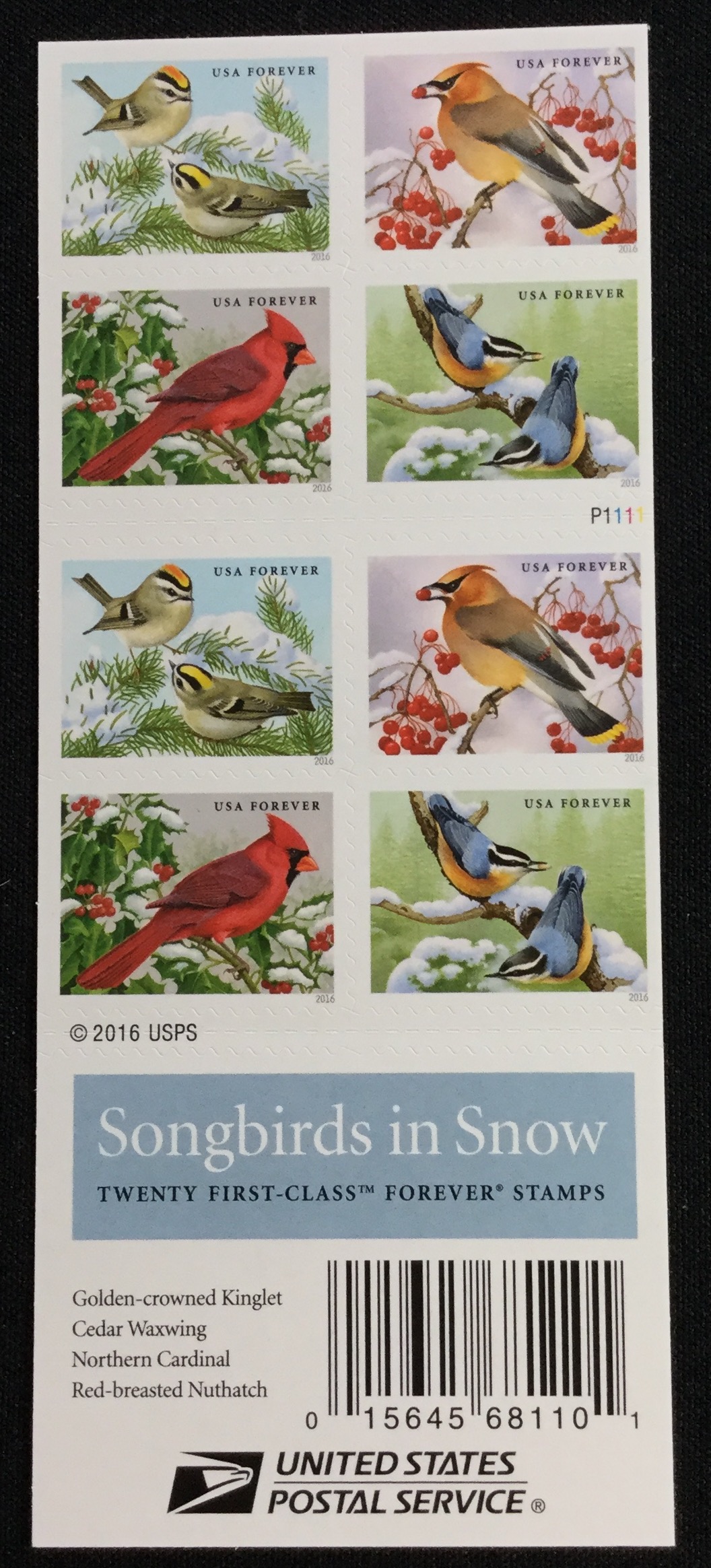 MINT NEVER HINGED US #5126-5129 (5129b), BOOKLET OF 20. Songbirds in Snow. ANY SHADOWS ARE DUE TO MY PHOTOGRAPHIC EXPERTISE.See Photo.