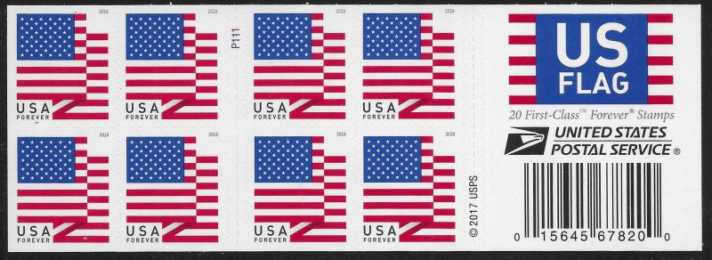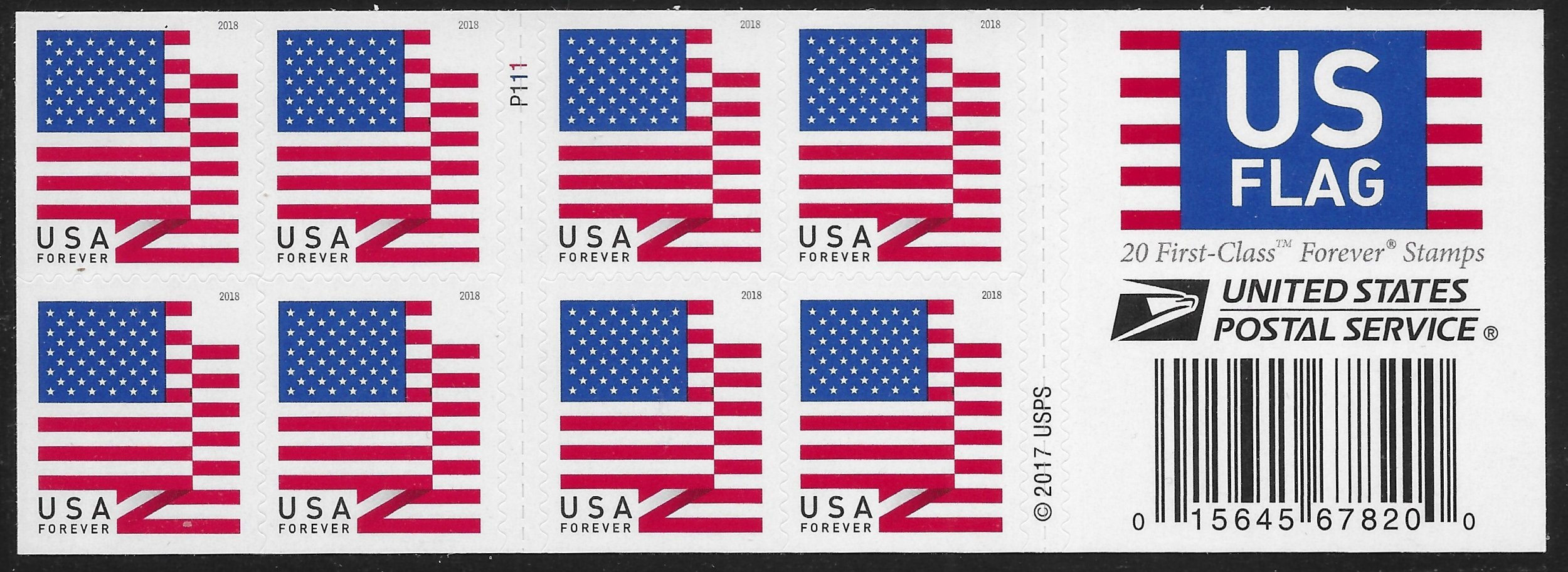 See Scan for Front and Back____‹^› ‹(•¿•)› ‹^›__ 2018 MNH Pane 20 - USPS at Left 4th Red StripeSeller Information