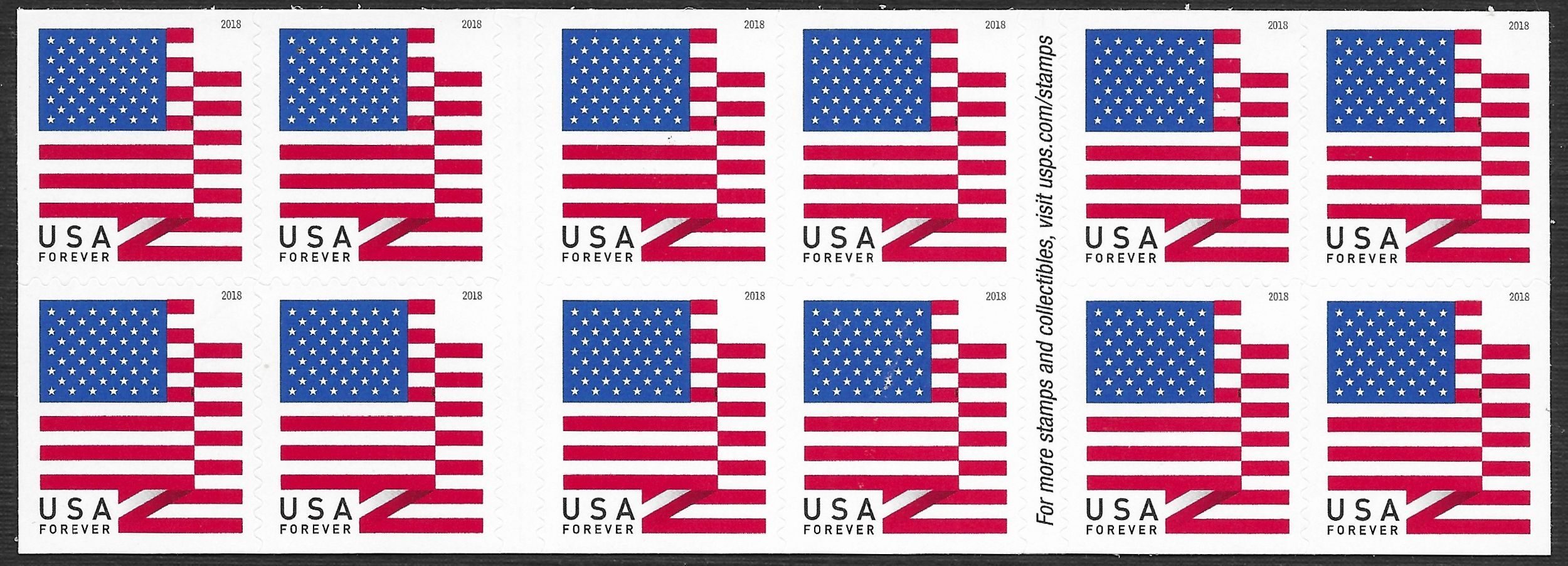 See Scan for Front and Back____‹^› ‹(•¿•)› ‹^›__ 2018 MNH Pane 20 - USPS at Left 4th Red Stripe