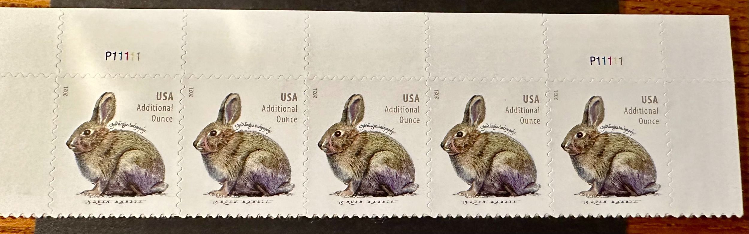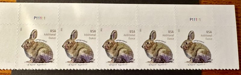 US # 5544 Brush Rabbit strip of 5 additional ounce rate 2021 Mint NH