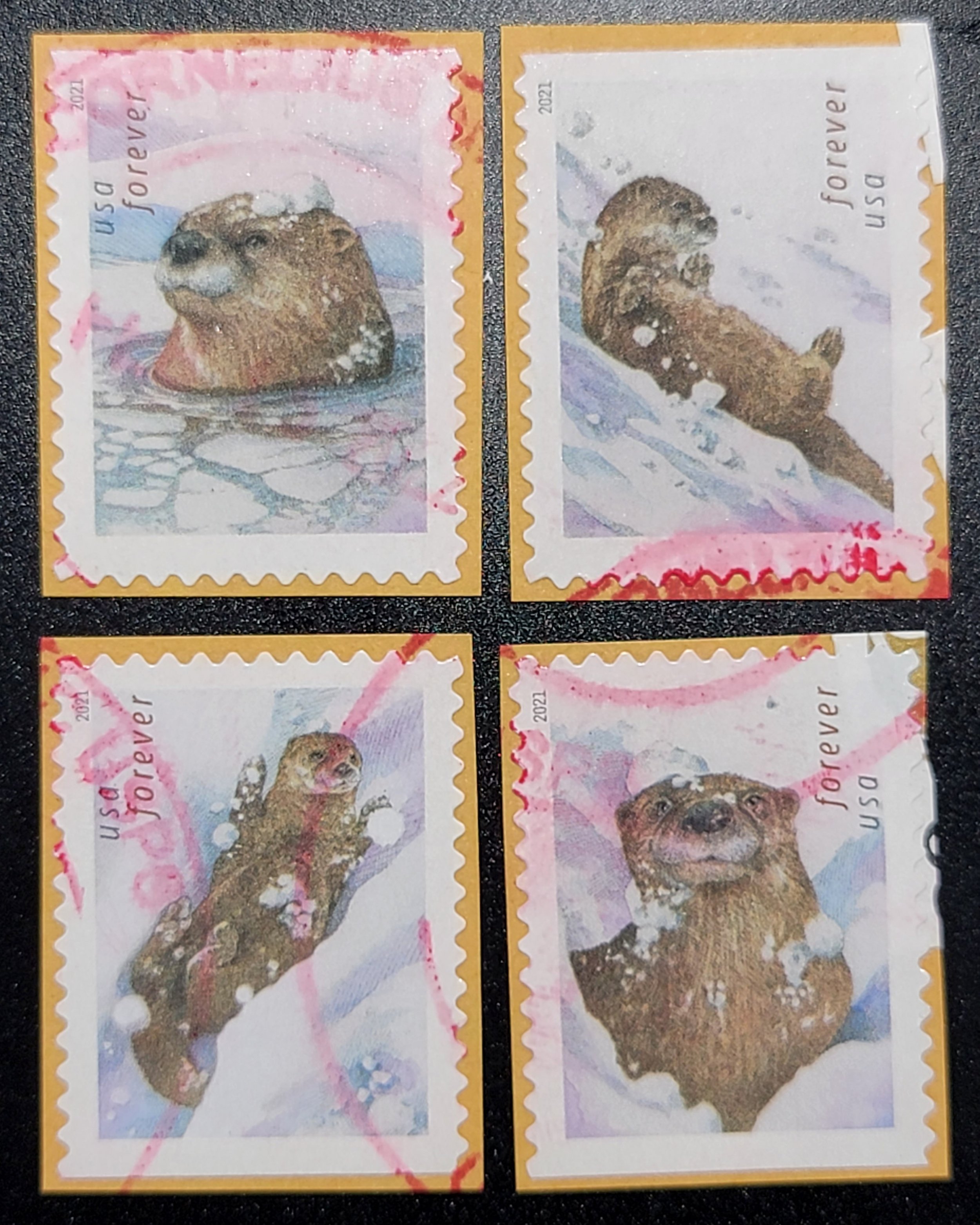 2021 Otters in the Snow stamps, complete set of 4, used.