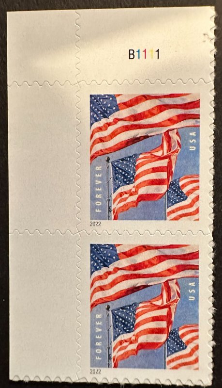 US # 5654 Flags pair w/plate # forever 2022 Mint NH