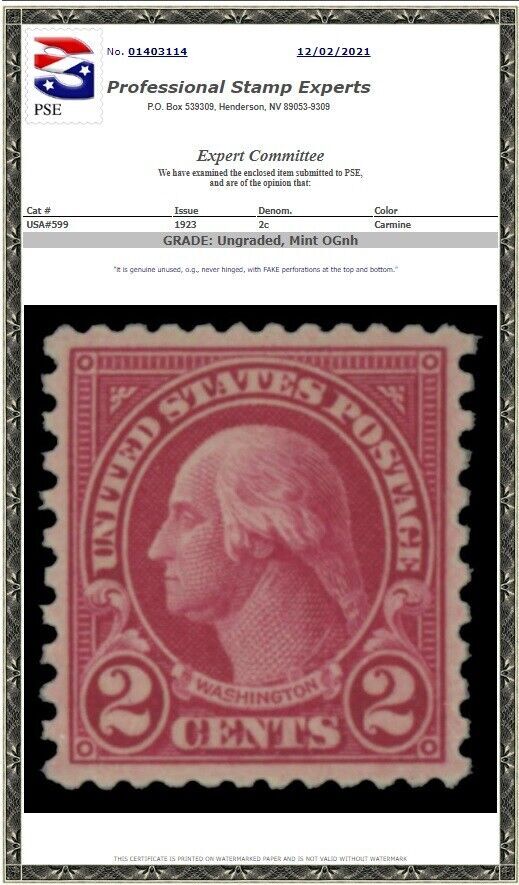 Grade: F/VF (Fine/Very Fine)U.S. #579 Type I MH with tiny piece of hinge remaining, rotary press coil waste single, fine-very fine centering and plate number ☆15499. Sometimes faked by perforating #599 top and bottom (see photo #3). This is a stamp I would not normally sell without a COA, but the plate number certifies this as #579.For anyone who may be "on the fence" about the importance of expertization, I have taken the liberty of reproducing an article from the September 2021 American Philatelist (photos 4-7) about one APS member's experiences with buying stamps at auction and then having them certified. If you take the time to read or even scan it, I think you will be appalled, as was I. Bottom line is: classic US stamps purchased without expert certification have about a 50/50 chance of being altered, misidentified or having some type of flaw or defect. Those odds might be good for Vegas, but not, I suspect, for most philatelists. I should also point out, that the gentleman who wrote this article was buying from many of the big auction houses of the day, prior to the advent and proliferation of on-line auctions. In today's environment, where virtually anyone can be an auction house, the odds are probably less than even that you will get what you paid for when buying uncertified classic stamps.About shipping: I combine shipping. Any other item purchased with this will ship at no additional charge. I’m pretty sure you’ve figured out by now that there’s no such thing as free shipping. Every seller who offers “free shipping” has already baked the shipping fees into the listing price. Which means you get to pay sales tax on everything including the “free shipping.” I price my items very competitively and charge a nominal shipping fee on the first item you purchase. Every additional item really does ship free as my price doesn’t include any kind of shipping or handling charges. In most cases, the catalog value of the stamps I use to ship your item(s) will exceed whatever you have paid for shipping, so in that respect, the shipping is just about a wash. A Little About Me and My Commitment to You I’ve been a regular member of the APS for over 40 years (member ID# 130461) and I’m still a collector more than anything. If you check my feedback history, you will find that not only is it pristine, but that I buy far more than I sell. One thing that really troubles me are sellers who just throw a stamp up for sale and don’t even take the time to offer a good description or a compelling reason why I should want to buy their item. As an experienced collector and seller, my commitment to you is that I will always provide a thoughtful and truthful commentary on all the relevant aspects of every stamp that I offer for sale/auction. And I will give you the bad as well as the good, though I try not to sell stamps that have problems. Where applicable, I will also do my best to impart any useful information on the stamp and any pitfalls buyers should be aware of. In the unlikely event that I have misidentified a stamp, I will gladly cover your costs of expertization* provided both the stamp and certificate are returned to me. As far as I know, I am the only seller that makes this guarantee. So bid/buy with confidence that what you will receive is exactly what I have described and if you feel it is not, that I will make the return process as pleasant as possible. You can also expect an interesting assortment of stamps adorning your shipment--no run-of-the-mill forever stamps or postage meter strips! See photo #4 for a sample of what you can expect. *I recognize the expert opinions of APEX, William Crowe, the PF, PSAG and PSE.