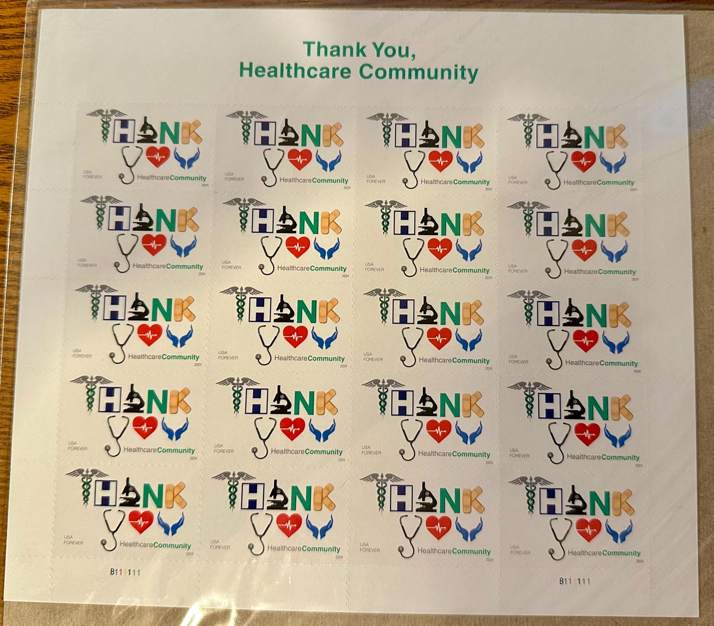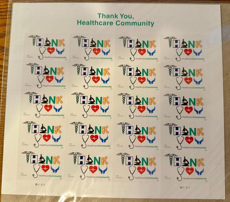 US # 5947 Thankl You Healthcare Community forever Pane of 20 2024 Mint NH CV $30