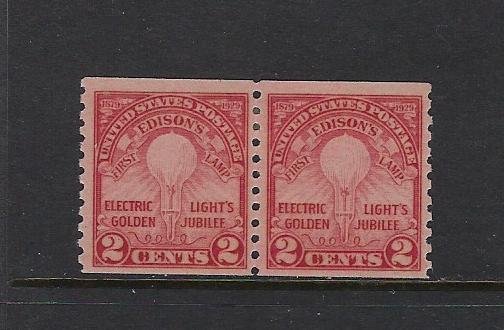 US #656 1929 ELECTRIC LIGHT- COIL PERF 10 VERTICALLY- PAIR MINT HINGED