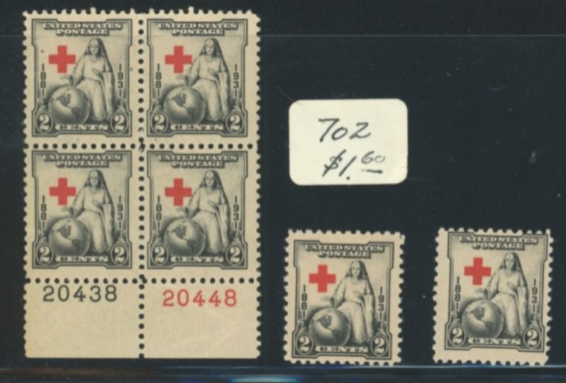 U.S. #702 MINT SET INCLUDING PL# BLOCK/MIXED CONDITION