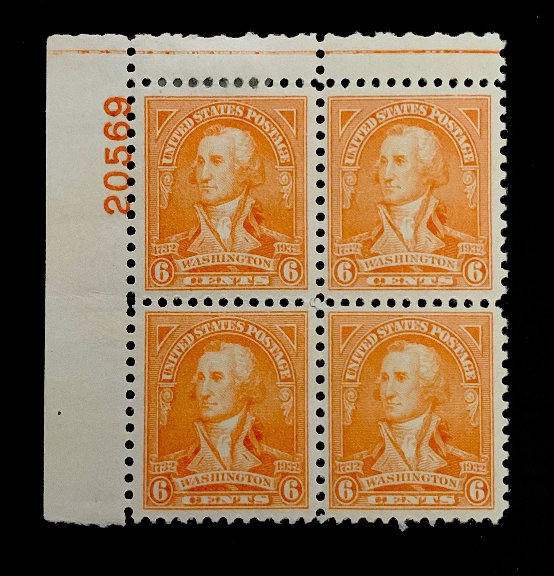 US #711 MINT OG VLH Plate block