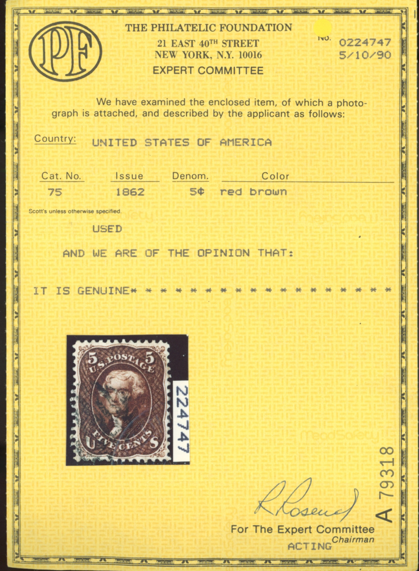 U.S. #75 USED WITH PF CERT
