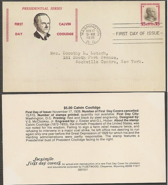 US # 834 ADDR FACSIMILE FDC Calvin Coolidge