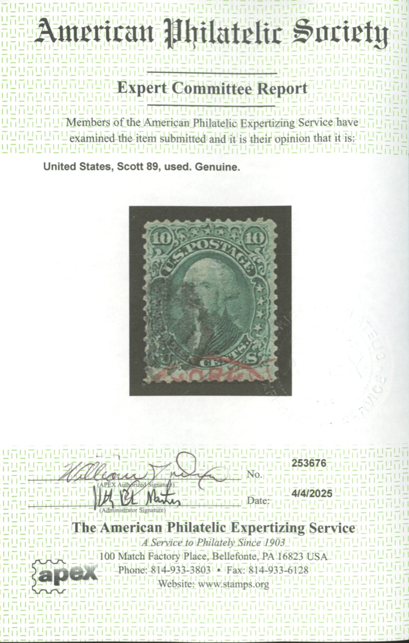 U.S. #89 USED WITH APS CERTSeller Information