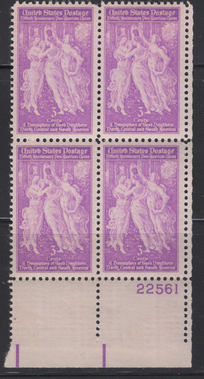 US 895 MNH, PLATE BLOCK,