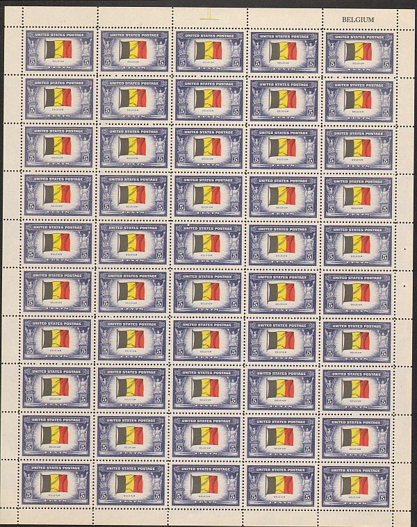 US #914 Mint Sheet BelgiumThe image shown may not be the actual sheet you receive.