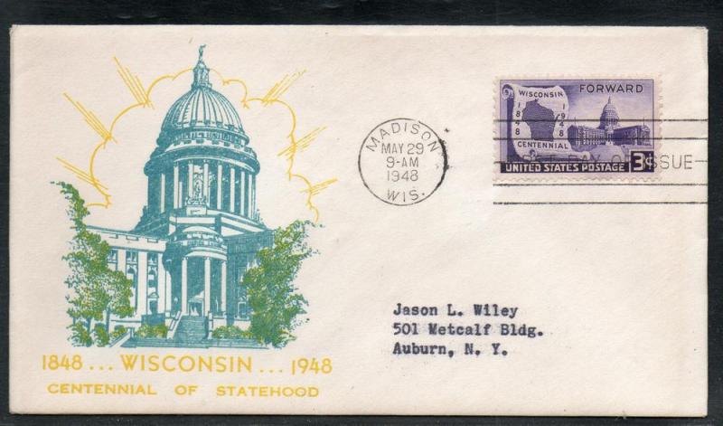 US #957 Wisconsin FDC Bronesky Risko Cachet addr E14