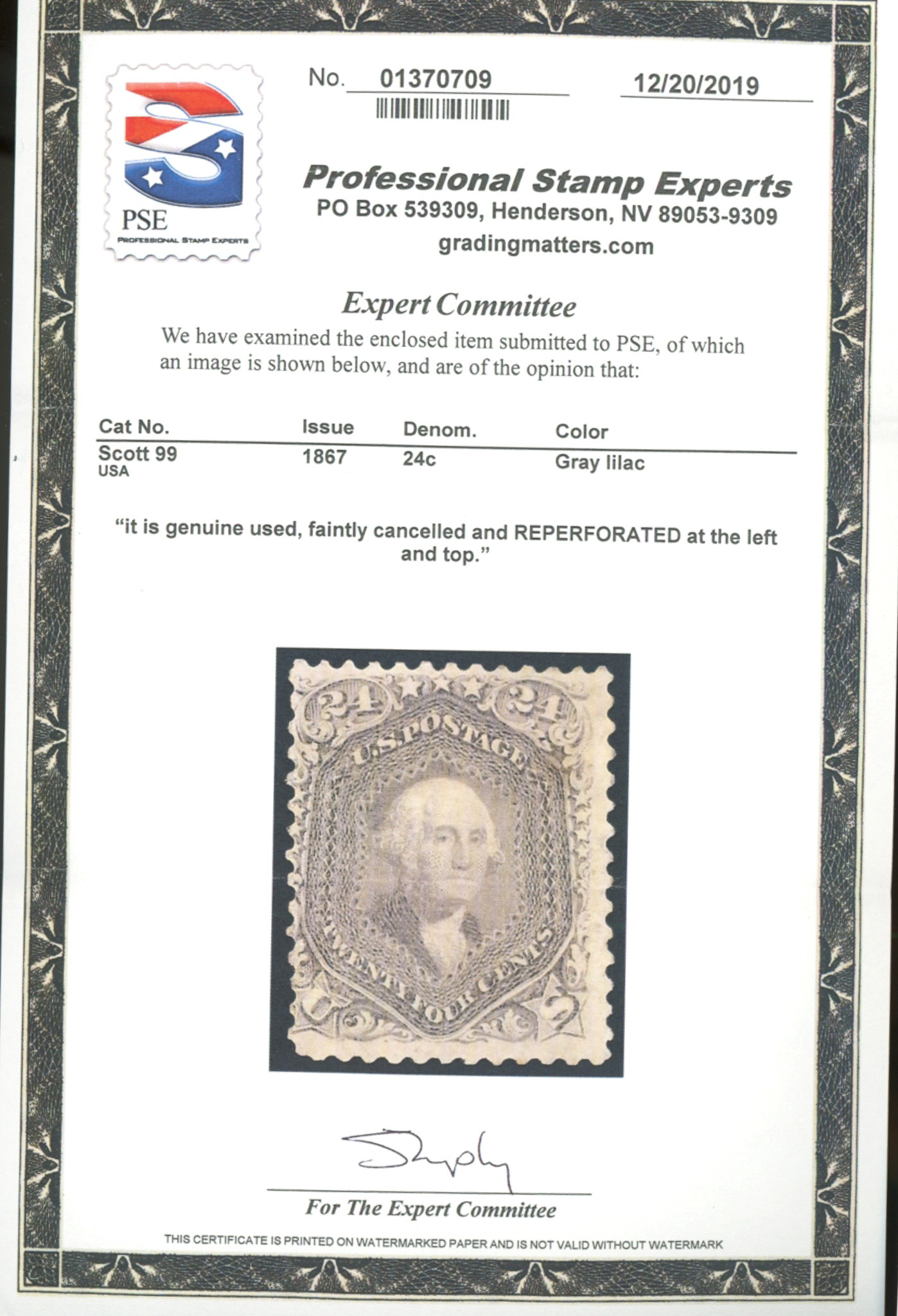 U.S. #99 USED WITH PSE CERT