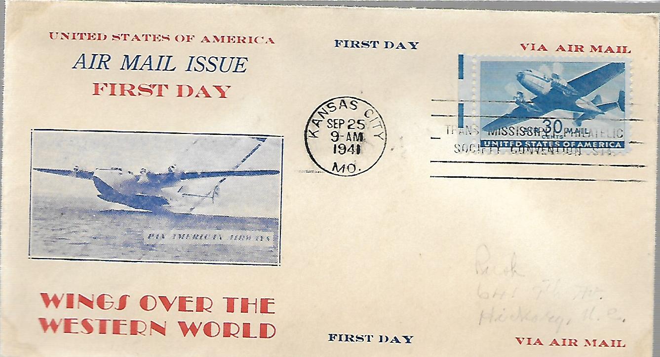US C30 FDC PLANE, UNKNOWN CACHETS