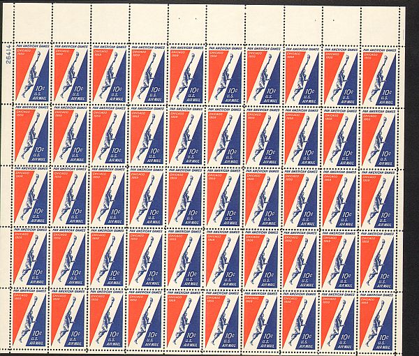 US #C56 Mint Sheet Pan-Am Games The image shown may not be the actual sheet you receive. Sheets will not be folded. Minor perf separations in the selvedge are normal and are not grounds for return. Centering will ... Read More