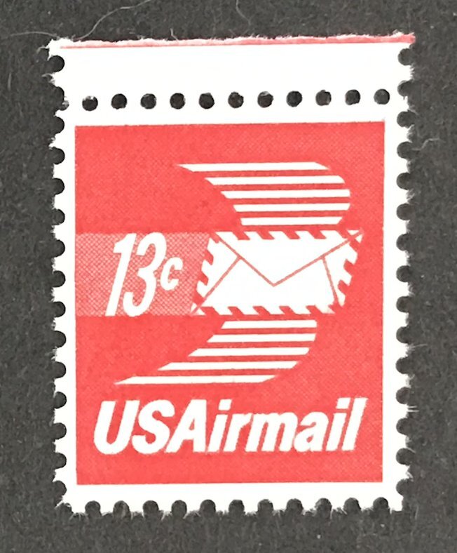 Winged Airmail Envelope. 13c Carmine (1973). Fresh color.2022 Scott CV = $0.25
