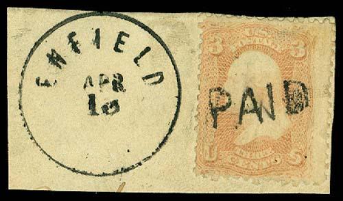 U.S. CLASSIC CANCELS, 65 Used, SON HC on piece, PAID, VG Cat. Val. $ 3.35 (ID # 58295)