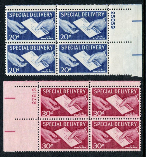 U.S. E20 and E21 Special Delivery Plate Blocks, MNH