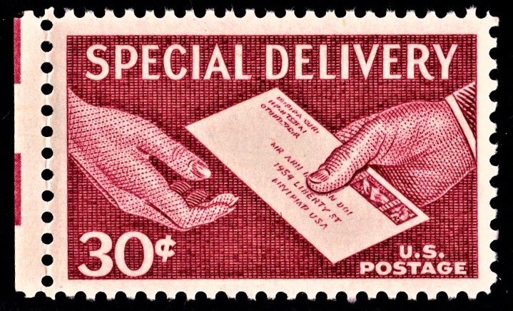 1957 Special Delivery Issue. US E21 MNH VF 30 Cent "Hands and Letter" Please see scan. The stamps shown are the stamps you will receive