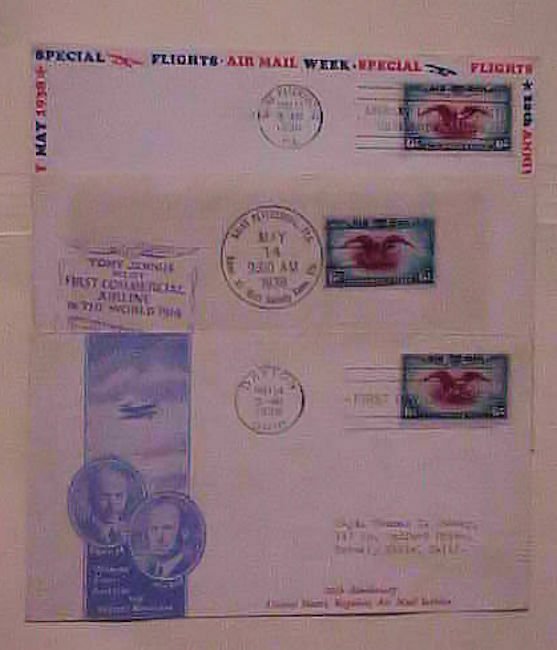 US FDC 3 DIFF. AIR MAIL 1938 CACHET ADDRESSED