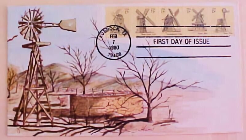 US FDC HAND PAINTED 1980 WINDMILL