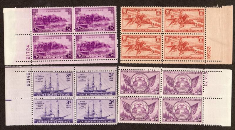 U.S. Four 3 Cent Mint Plate Blocks!