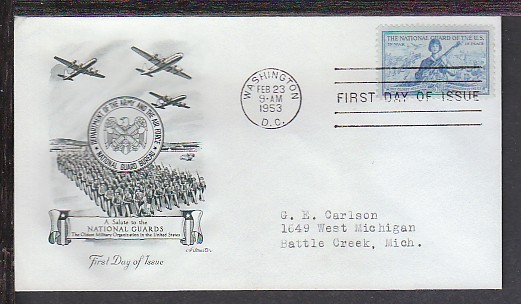US National Guard 1953 Artmaster Typed FDC BIN