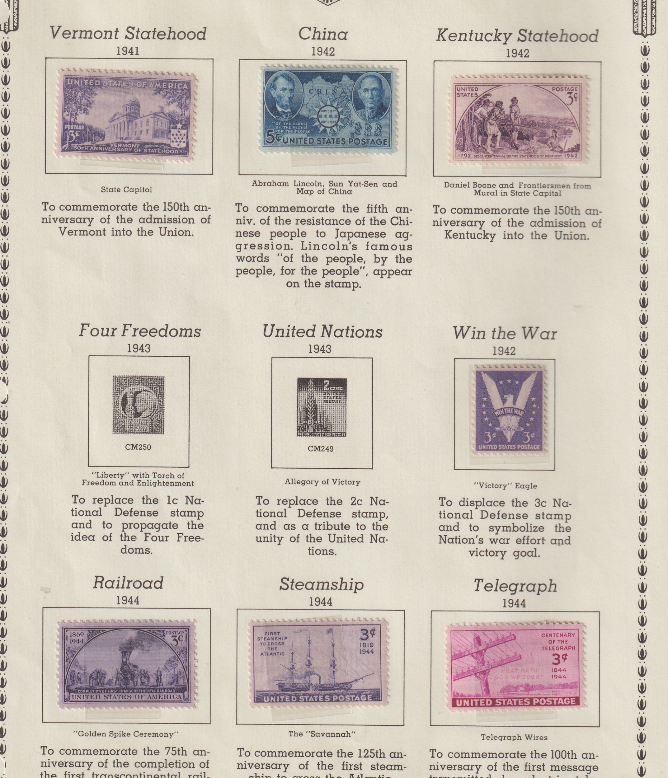 U.S. page of stamps