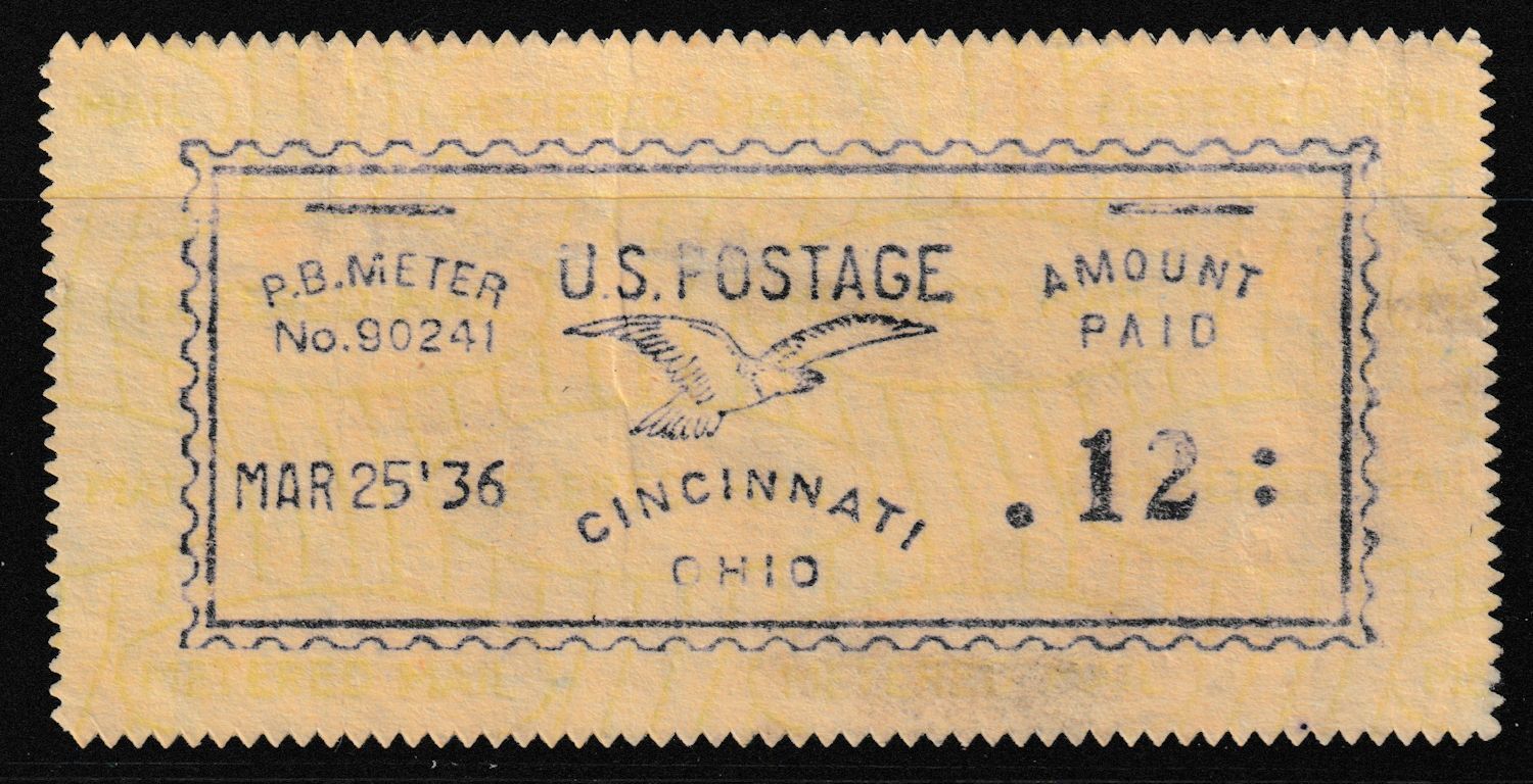 Choice U.S. Pitney Bowes Meter Label Mar25'36 Cincinnati Ohio Group F2021 Catalog N/A