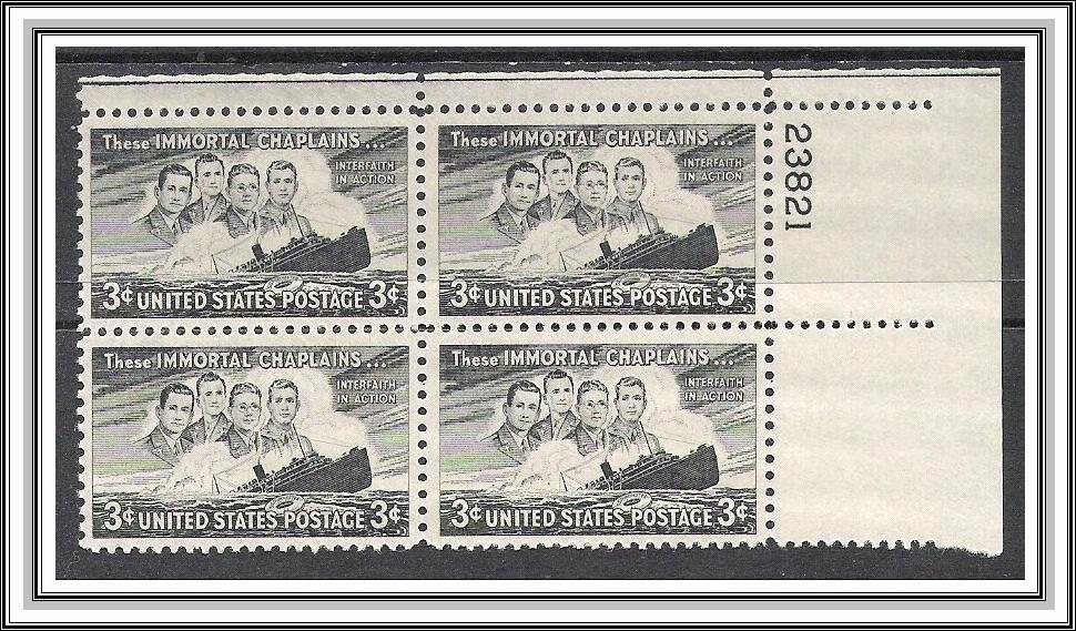 US Plate Block #956 Four Chaplains MNH