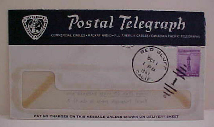 Us postal telegraph 1942 red buff cover. fine condition. Shipping and handling $1.50 usa, international $2.99 multiple winning bids can combine to save postage. Calif. Buyers please add 9.50 % sales tax. We ship ... Read More