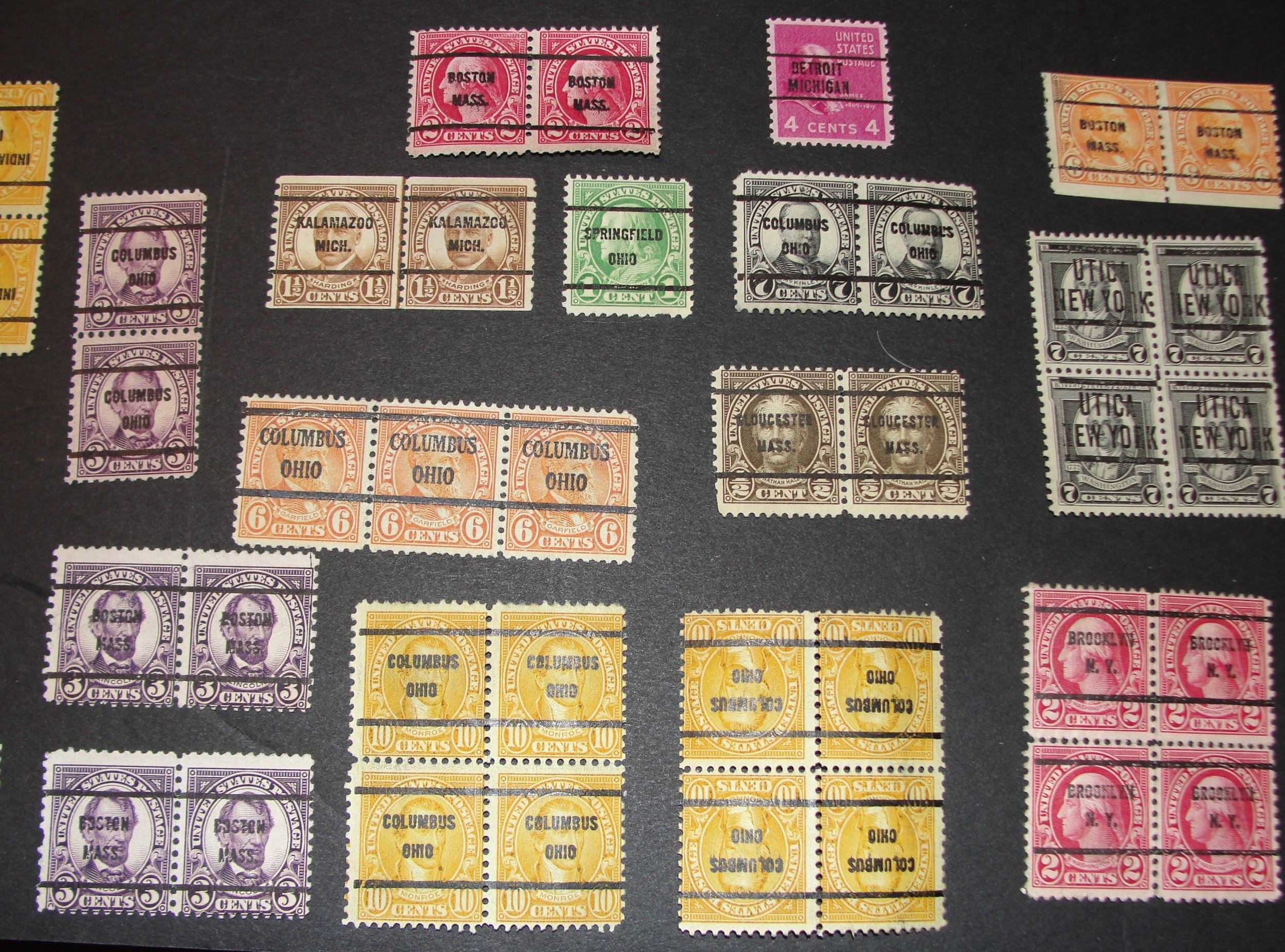 You are bidding on lot of mixed US precancel stamps that appear to be in good condition the block of 4 under the block of 6. There is a crease through 3 of the stamps. The coil pair 1 1/2c has hinge marks & the 2c b ... Read More
