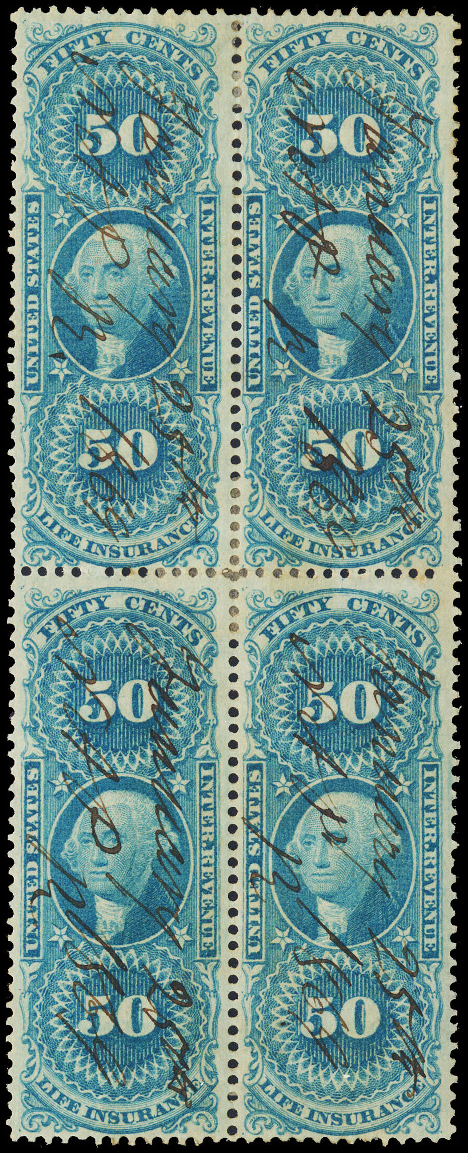 U.S. REV. FIRST ISSUE, R58c Used, BLK/4, MC, F-VF Cat. Val. $ 50.00 (ID # 116341)