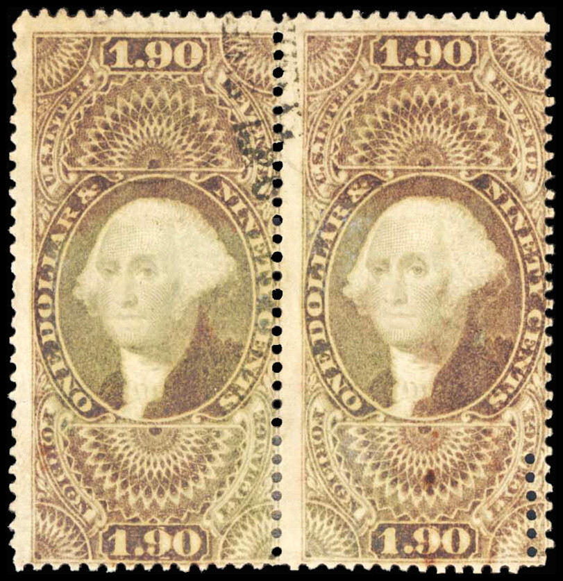 U.S. REV. FIRST ISSUE, R80c Used, H. Pair, HC, some sm. tone spots, extra perfs at B.R., Very Good centering, only a few pairs known Cat. Val. $ 500.00 (ID # 119132)