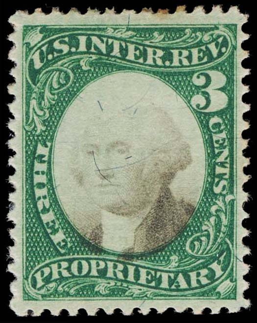 U.S. REV. PROPRIETARY, RB3aMint, HR, tone spot, dark color, VF