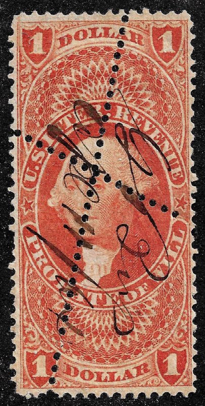 US. Sc R76c. $1 Probate of Will. Two extra diagonal lines of perfs. Used. 2019 CV = $55.00Seller Information