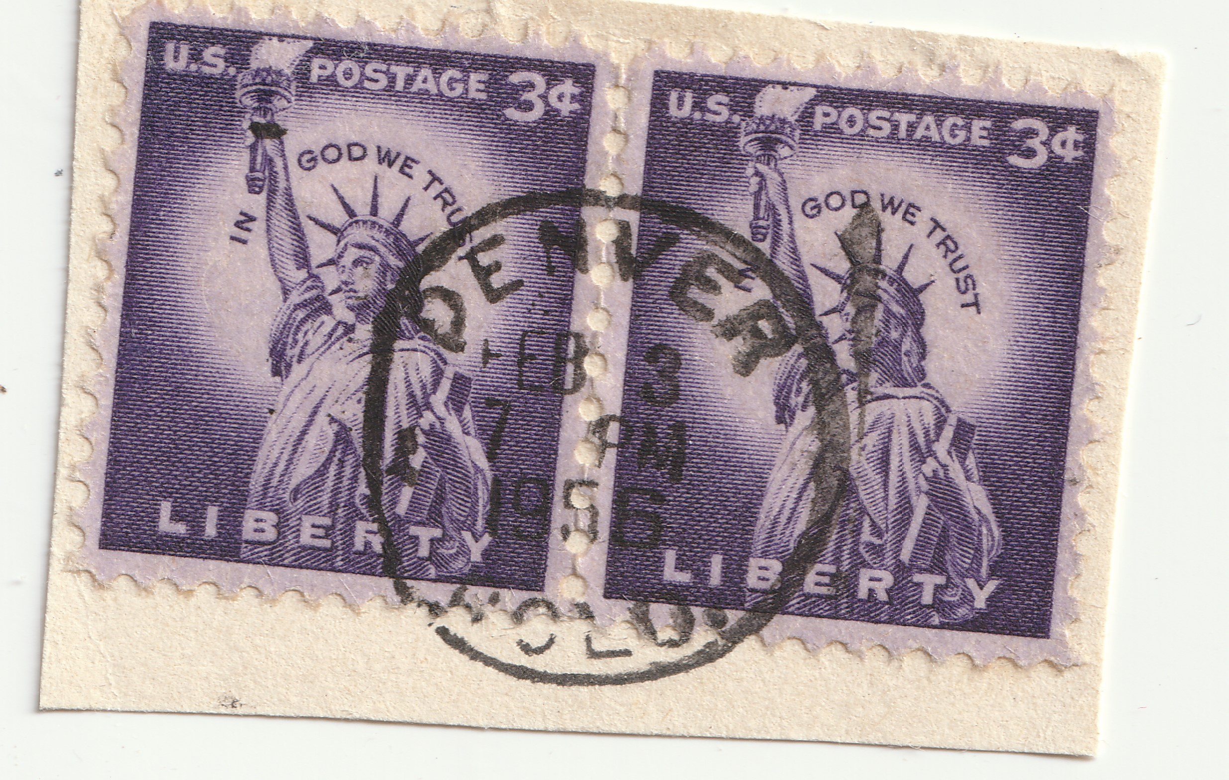 Pair Scott 1035 on piece with Denver Feb 3 1956 cancelSeller Information
