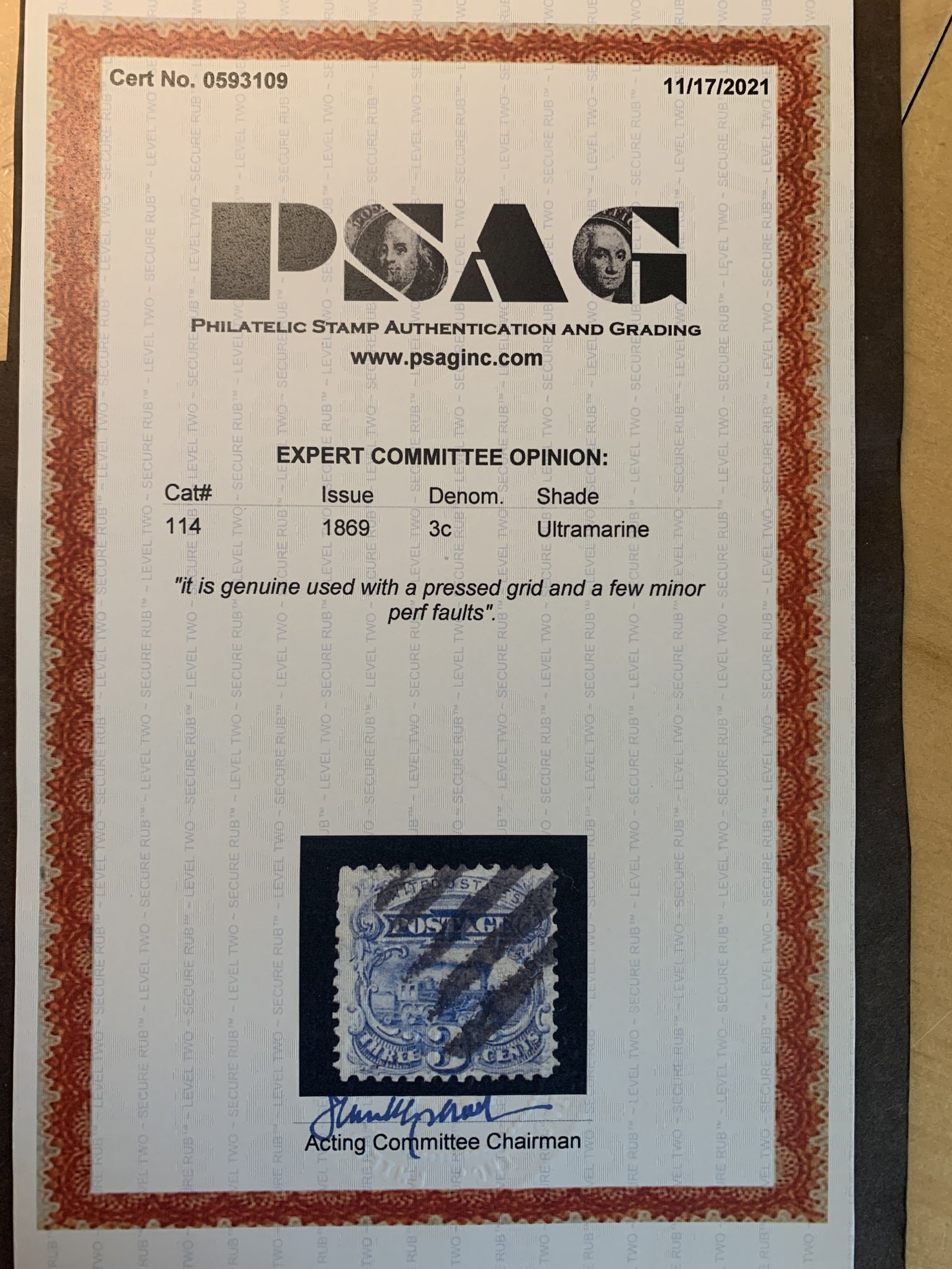 US Scott #114 PSAG Cert