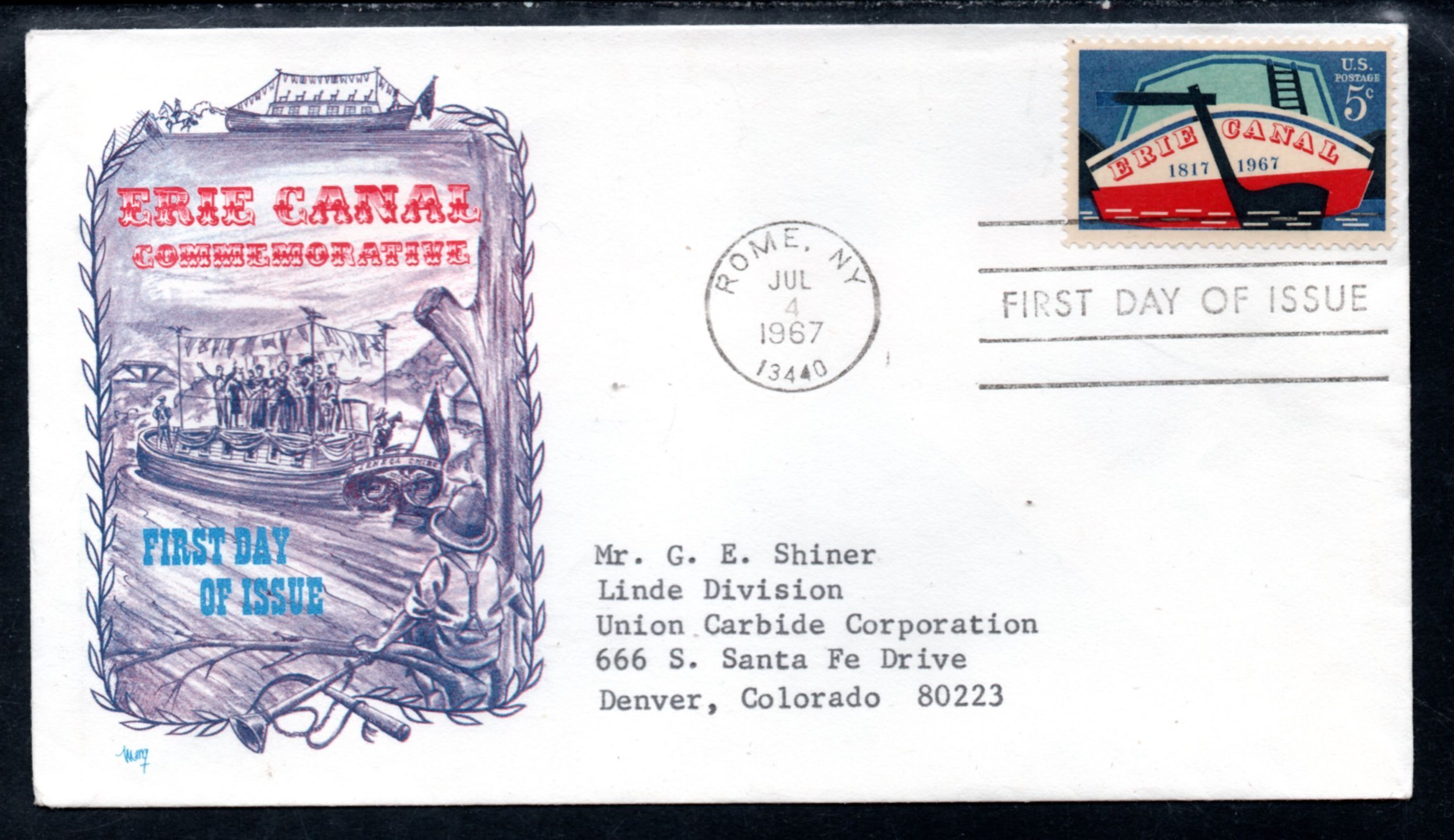 US Scott #1325 First Day of Issue, "Erie Canal", Addressed, CV: $1.00
