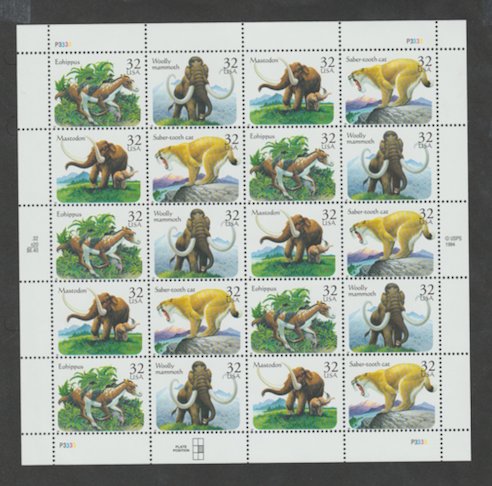 U.S. Scott #3077-3080 Prehistoric Animals Stamps - Mint NH Sheet - MR Plate