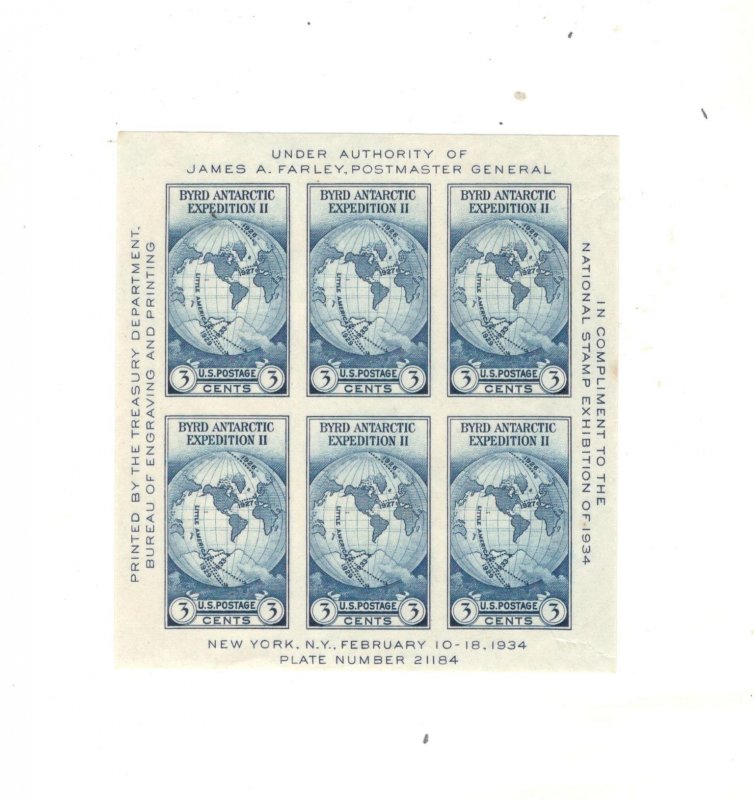 US SCOTT# 735 SOUV SHEET, MNH