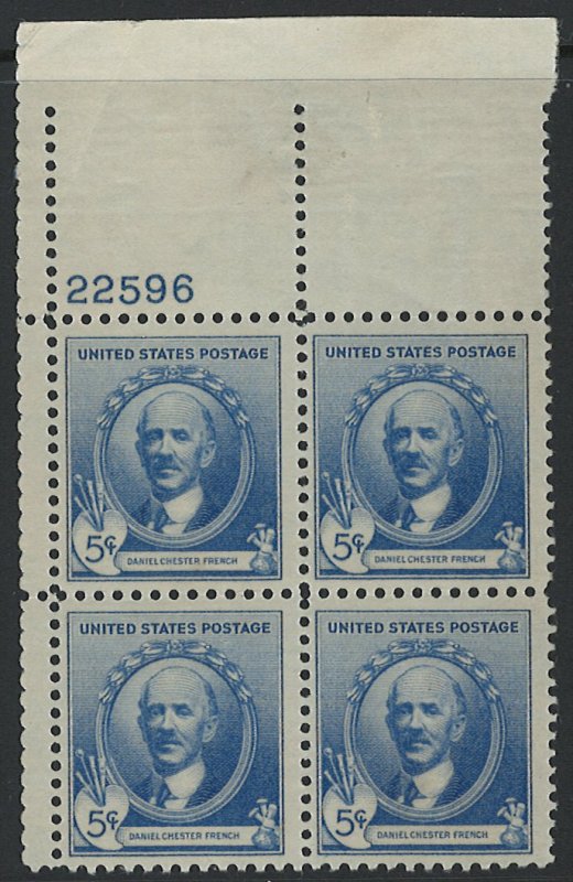 US Scott 887 Plate Block Mint Hinged