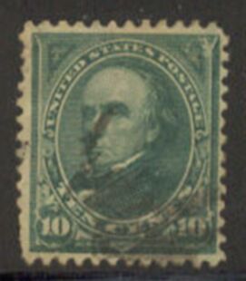 Us stamp scott #258 webster 10¢ first bureau regular issue. Postally used, may have a hinge remnant, back notation, hinge pull or other slight ache or pain. Super classic stamp. See wysiwyg scan for perfs, centerin ... Read More