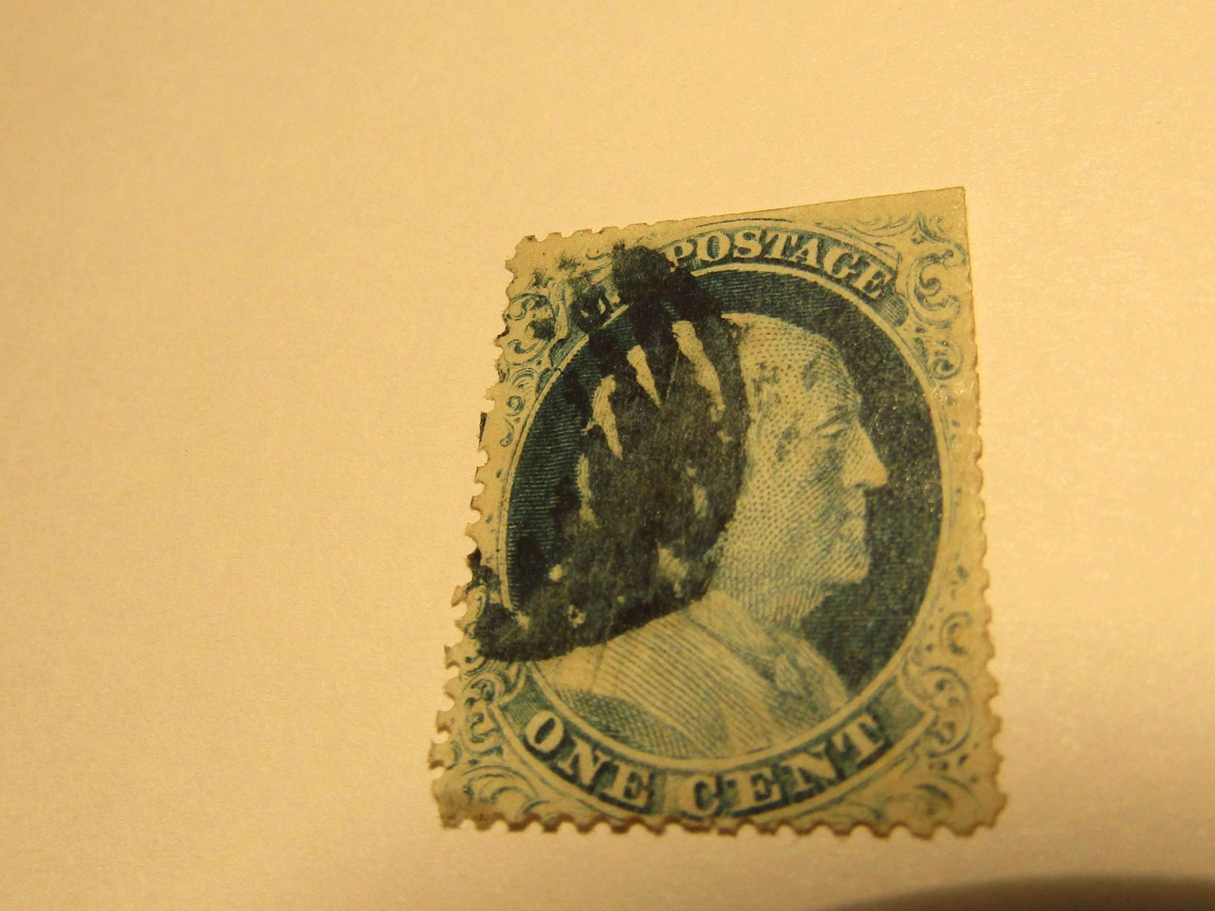US Stamp, Scott #23 Used, SCV $575.00, w/Certificate, Clipped at top and right, Type IV, Blue Circular Grid Cancel, A Relief from Plate 1Late, Position 37L1L, Recut once at top and once at bottom variety, (113 on pl ... Read More
