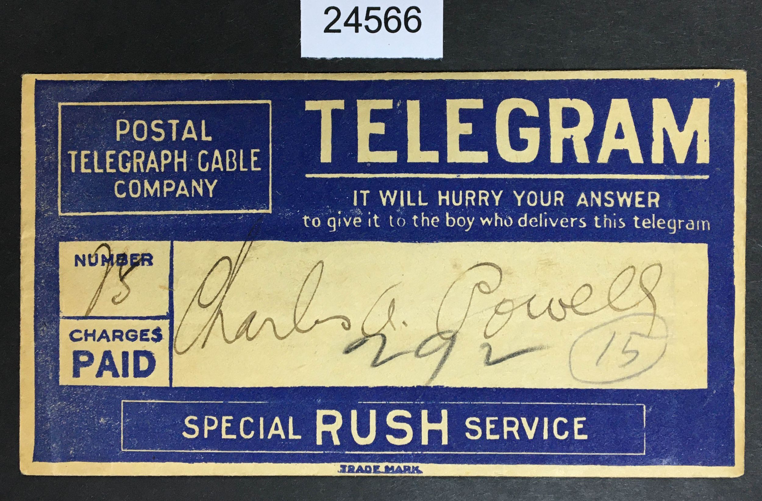 US STAMPS # 1 TELEGRAM CAT. $ LOT #24566